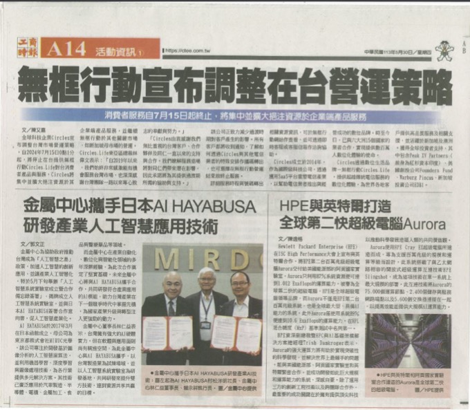 ●金屬中心攜手日本AI HAYABUSA 推動人工智慧產業化(台湾Yahoo!新聞)