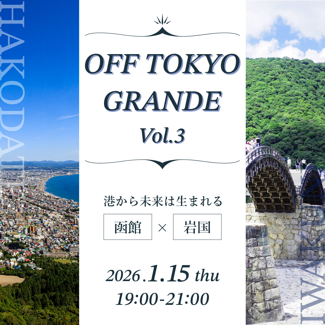 シビレ株式会社様が主催する、自治体、経営者・起業家層と、地域を舞台にした事業・活動に関心を持つプレイヤーが、直接つながるイベント「OFF TOKYO GRANDE」に【岩国市】と登壇します。