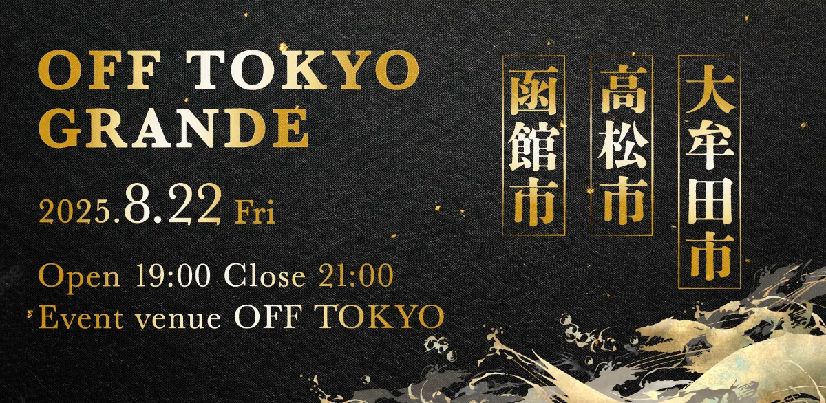 シビレ株式会社様が主催する、自治体、経営者・起業家層と、地域を舞台にした事業・活動に関心を持つプレイヤーが、直接つながるイベント「OFF TOKYO GRANDE」に【高松市様】、【大牟田市様】と登壇します。